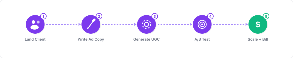 4. A portfolio of sample ads. Before you pitch a single client, you need 5-10 sample ads across 2-3 niches that demonstrate your output quality. Create these using Arcads before you do any outreach.