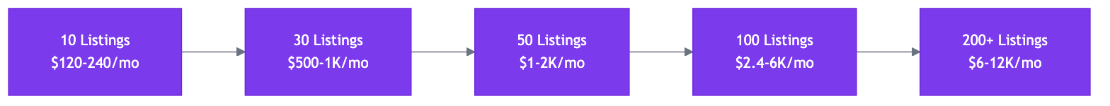 - Realistic monthly sales after 6 months with 60+ listings: 80–200
