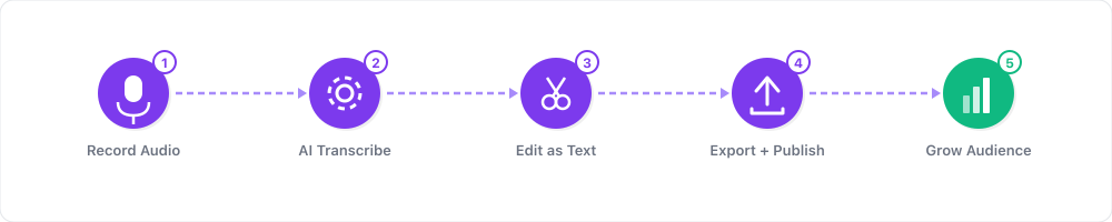 5. Not repurposing content. You already have the transcript in Descript. Turning it into a blog post takes 20-30 minutes and captures search traffic that audio cannot. Cutting 3 short clips for social media takes another 15 minutes. Podcasters who repurpose grow 3-5x faster than those who publish audio only and move on.