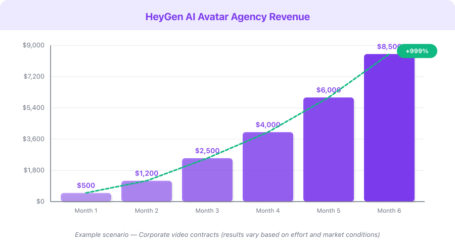 Disclaimer: These are example scenarios for illustrative purposes only. Actual results vary based on your niche, market, effort, skills, and many other factors. These figures are not guarantees or predictions of income.