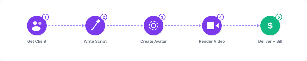 - 3–5 sample videos — Create these before you reach out to any client. Pick industries you want to target and produce sample product explainers, training videos, or social media ads using HeyGen's avatar library.