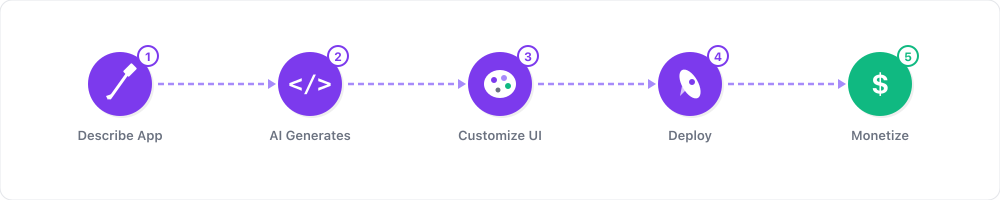 Build common app types (CRM, booking system, project tracker, invoice generator) as polished templates. Sell them on Gumroad or your own site. Other entrepreneurs buy your pre-built app and customize it for their niche. This is passive income — build once, sell many times.