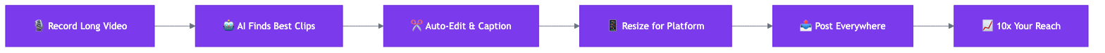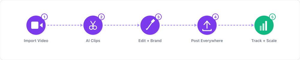 - Today: Process your first video and post 3 clips across YouTube Shorts, TikTok, and Instagram