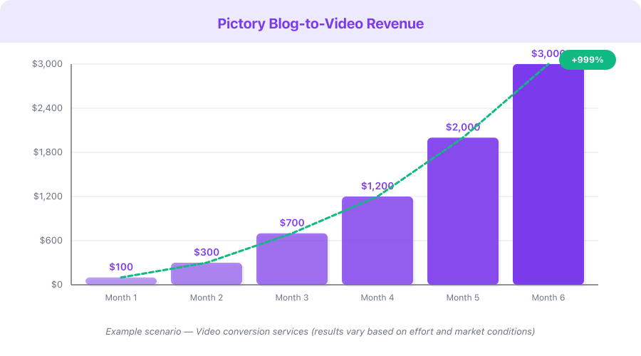 1. Freelance Video Conversion Services — $1,000-5,000/month The most straightforward model. Convert clients' blog posts into videos and charge per video or on retainer. Margins exceed 99% because Pictory's cost per video is under $1 while you charge $100-200+.